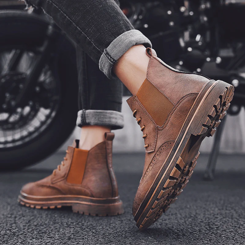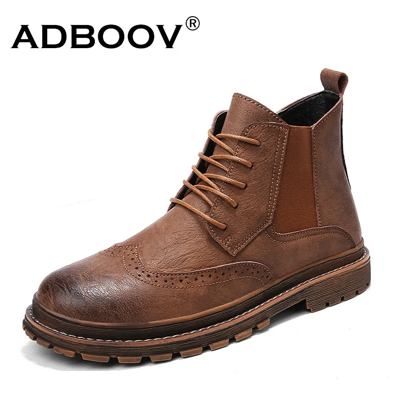 SALE ADBOOV Round Toe Boots For Men High Top Outdoor Platform Men Shoes Leather Rubber Sole Hiking Climb